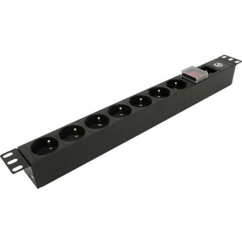 блок силовых розеток 19", 1U, 7 евророзеток, 230В, 16A, выключатель, вход: С20, металлический корпус