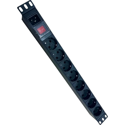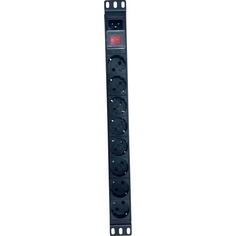 горизонтальный блок розеток, для 19" стойки, 1U, однофазный, ток: 16 А, выходные розетки: 8xSchuko, вход: IEC 320 C20, нагрузка до 3700 Вт
