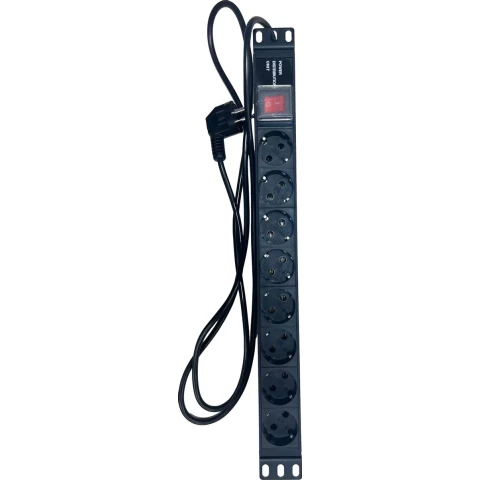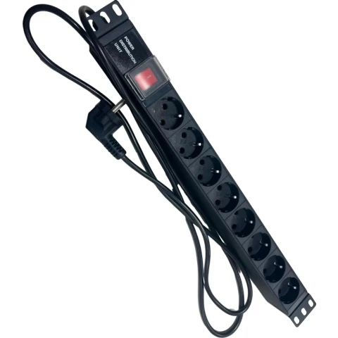 горизонтальный блок розеток, для 19" стойки, 1U, однофазный, ток: 16 А, выходные розетки: 8xSchuko, вход: Schuko, нагрузка до 3700 Вт