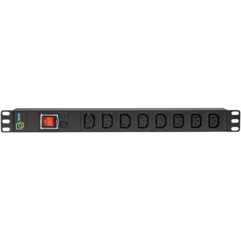 блок розеток 1U для установки в шкаф, 8 розеток IEC 320 C13, выключатель, макс. ток 10А, вход: вилка C14, без шнура питания