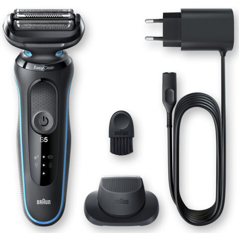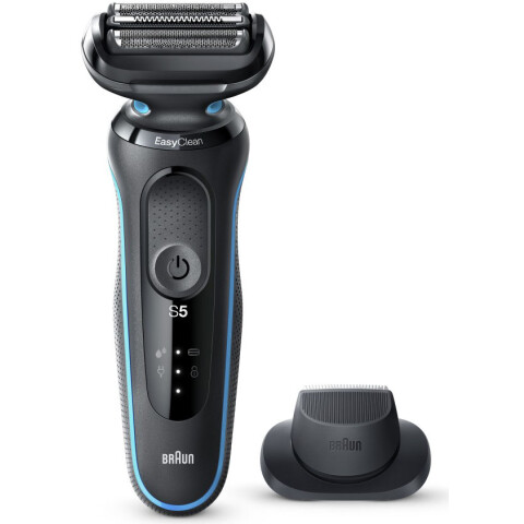 электробритва для мужчин, сеточная система бритья, сухое / влажное бритье, работа от аккумулятора, время автономной работы до 50 мин, плавающие головки, водонепроницаемый корпус, встроенный триммер