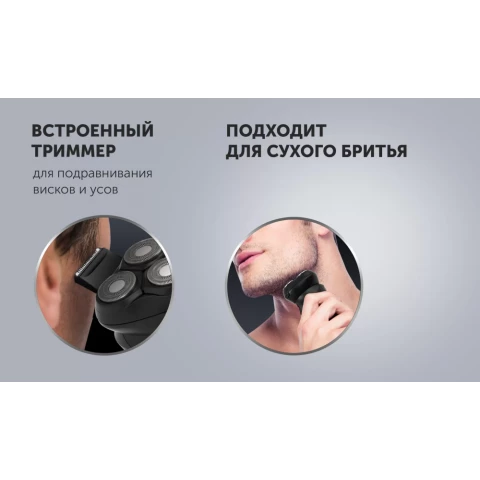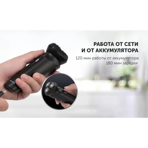 электробритва для мужчин, система бритья: роторная, способ бритья: сухой, от сети / аккумулятора, работа 120 мин