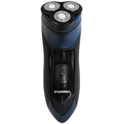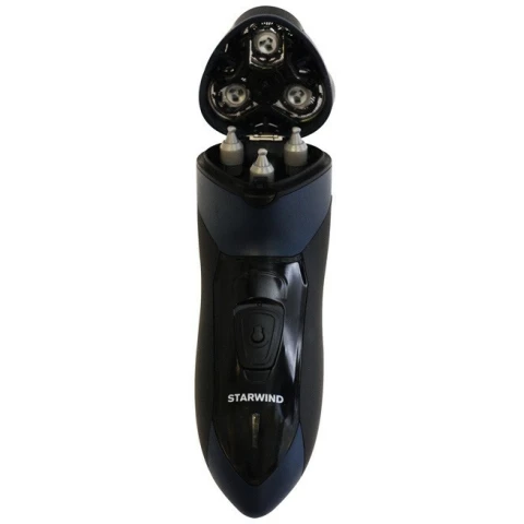 роторная система бритья, сухое / влажное бритье, работает от аккумулятора, время автономной работы до 45 мин, 3 бритвенные головки, встроенный триммер