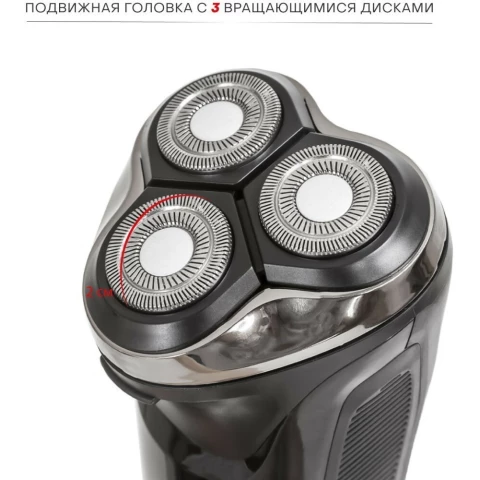 электробритва для мужчин, система бритья: роторная, способ бритья: сухой, от аккумулятора, работа 60 мин