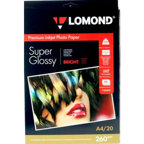 фотобумага, суперглянцевое покрытие, формат: A4, 260 г/м2, количество листов: 20 шт.