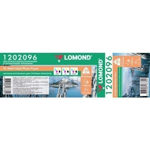 Бренд: Lomondфотобумага, матовое покрытие, формат: рулон, ширина рулона: 1520 мм, длина: 30 м, 180 г/м2