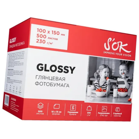фотобумага, глянцевое покрытие, формат: A6, 230 г/м2, количество листов: 500 шт.