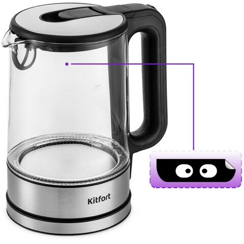 чайник, объём: 1.7 л, мощность: 1850-2200 Вт, закрытая спираль, материал корпуса: стекло, подсветка воды при работе
