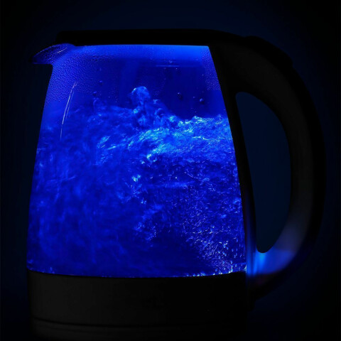 чайник, объём: 1.8 л, мощность: 2200 Вт, закрытая спираль, материал корпуса: стекло, подсветка воды при работе