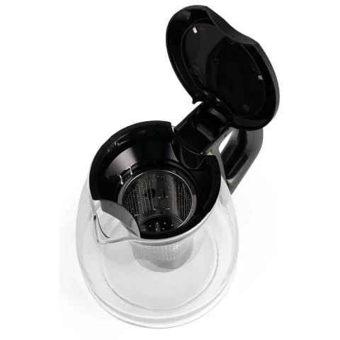 чайник, объём: 2 л, мощность: 1500 Вт, закрытая спираль, материал корпуса: стекло, подсветка воды при работе