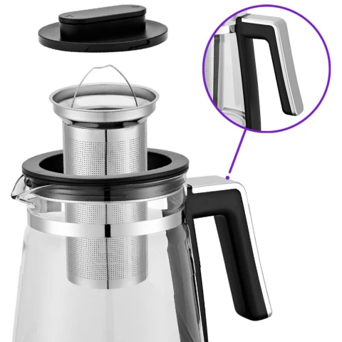 чайник, объём: 1.5 л, мощность: 1800-2150 Вт, закрытая спираль, материал корпуса: стекло, поддержание тепла