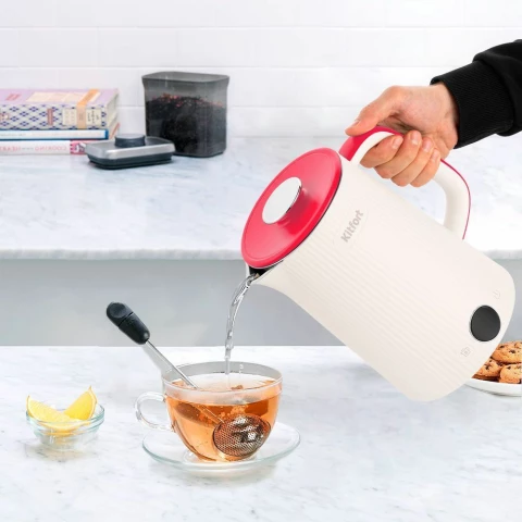 Бренд: Kitfortчайник, объём: 1.7 л, мощность: 1500 Вт, закрытая спираль, материал корпуса: металл/пластик (двойные стенки), поддержание тепла