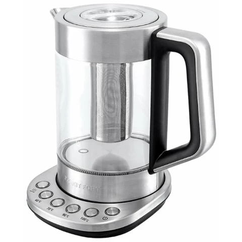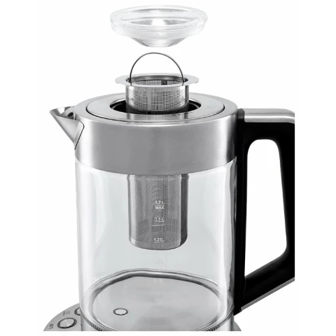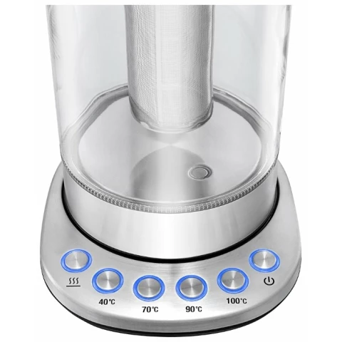 чайник, объём: 1.7 л, мощность: 2200 Вт, закрытая спираль, индикация включения, материал корпуса: металл/стекло, подсветка воды при работе, поддержание тепла