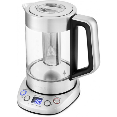 чайник, объём: 1.5 л, мощность: 2200 Вт, закрытая спираль, индикация включения, материал корпуса: металл/стекло, поддержание тепла