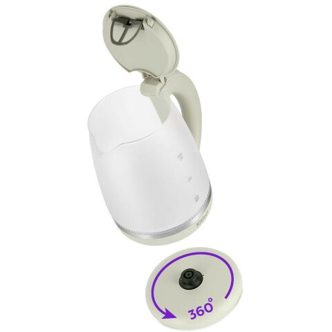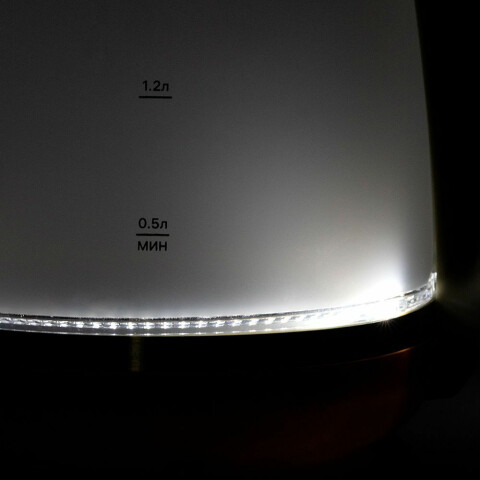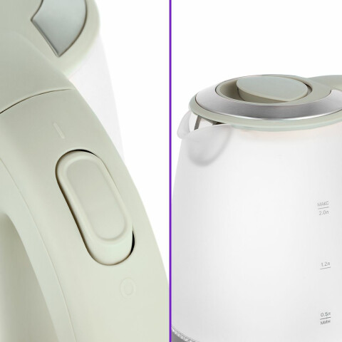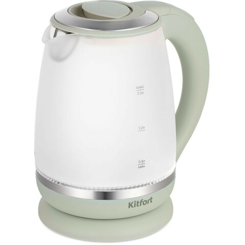 чайник, объём: 2 л, мощность: 2200 Вт, закрытая спираль, индикация включения, материал корпуса: стекло, подсветка воды при работе