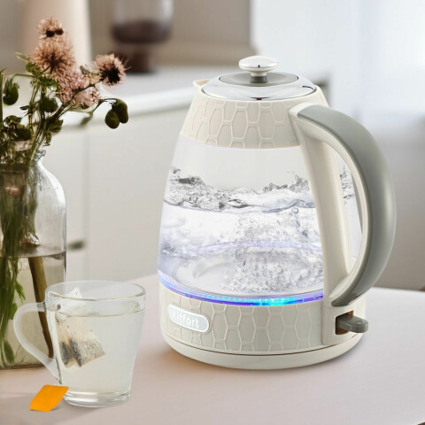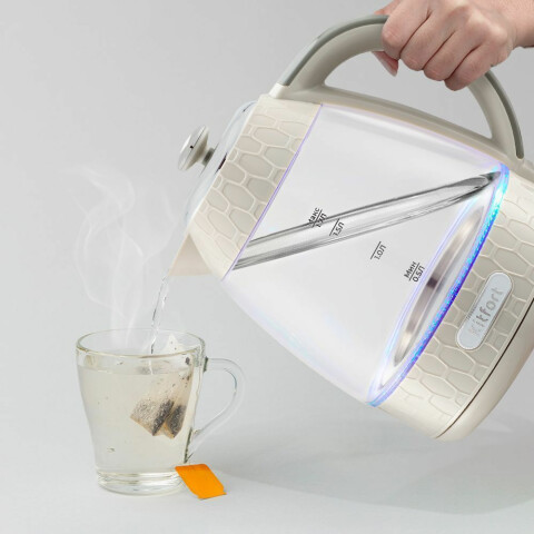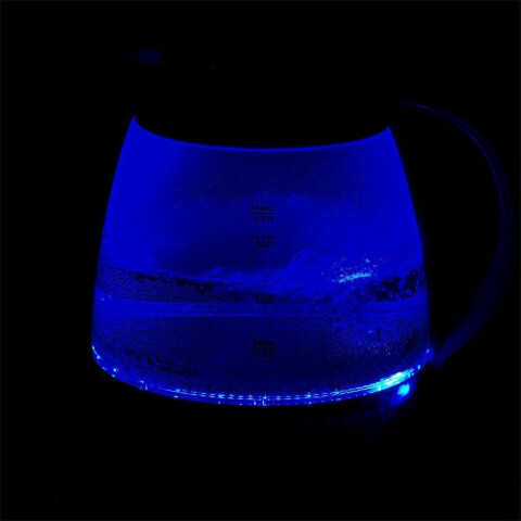 чайник, объём: 1.7 л, мощность: 2200 Вт, закрытая спираль, материал корпуса: стекло, подсветка воды при работе