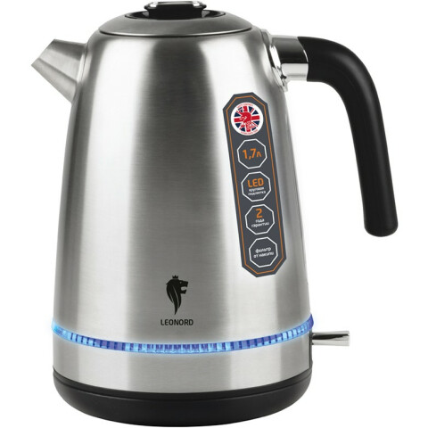 Бренд: Leonordчайник, объём: 1.7 л, мощность: 1850-2200 Вт, закрытая спираль, индикация включения, материал корпуса: металл