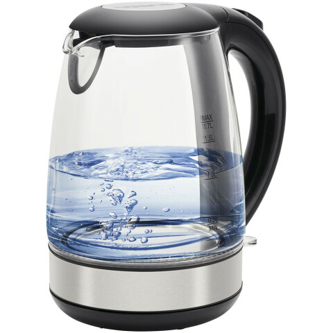 чайник, объём: 1,7 л, мощность: 2200 Вт, закрытая спираль, материал корпуса: стекло, подсветка воды при работе