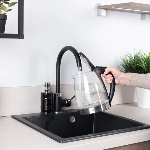 чайник, объём: 1.8 л, мощность: 1800 Вт, закрытая спираль, материал корпуса: стекло, подсветка воды при работе