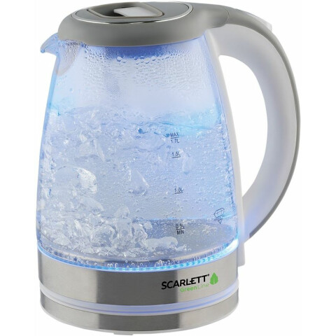 чайник, объём: 1.7 л, мощность: 2000 Вт, закрытая спираль, материал корпуса: пластик/стекло, подсветка воды при работе