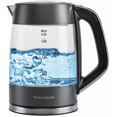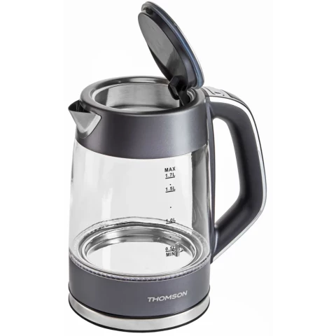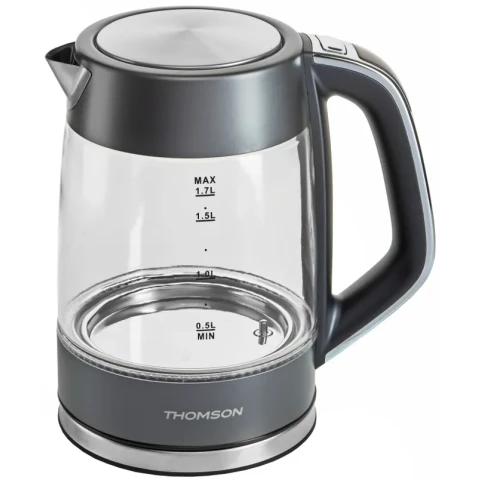 Бренд: Thomsonчайник, объём: 1.7 л, мощность: 2000 Вт, закрытая спираль, материал корпуса: стекло, подсветка воды при работе