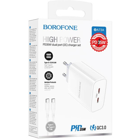 Бренд: Borofoneсетевое зарядное устройство, мощность 35 Вт, 2x USB Type-C, быстрая зарядка, кабель USB Type-C