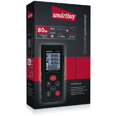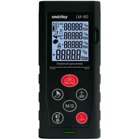 лазерный дальномер, до 80 м, погрешность ±1.5 мм, измерение площади, измерение объёма, сложение, вычитание, функция памяти