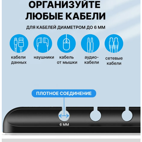 держатель проводов на 5 портов, диаметр порта: 6 мм, крепление на липкой ленте, 120x20 мм 142 смн.