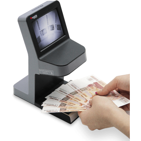 просмотровый детектор банкнот, тип детекции: ультрафиолетовая, магнитная, инфракрасная, водяной знак, ­«Страйп-эффект­», антистокс (спецэлемент И), LCD-дисплей