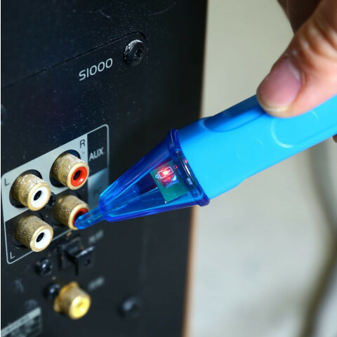 детектор напряжения, звуковой и светодиодный сигнал, 90-1000 В, бесконтактный способ измерения, питание от двух элементов ААА, рабоч. темп. -10 +50°C