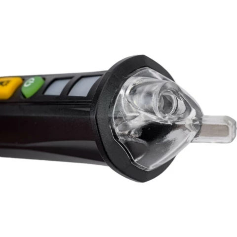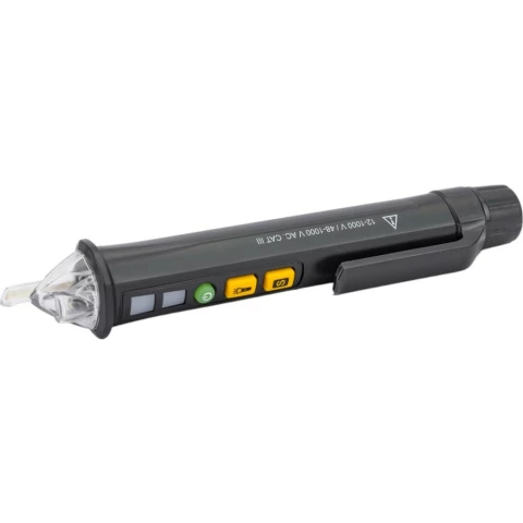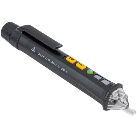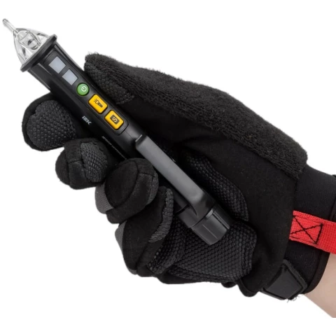 Бренд: IEKбесконтактный детектор напряжения 12-1000 В переменного тока, диапазон частот: 0-50 Гц, 3 уровня индикации интенсивности сигнала, автоотключение (5 мин), макс. предел чувствительности: 1000 В, питание: 2 батарейки AAA, стержень 156 мм