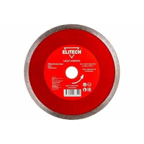 алмазный диск, по керамике, по граниту, диаметр 200 мм, толщина 2.4 мм, посадочное отверстие 25.4 мм, 1 шт.
