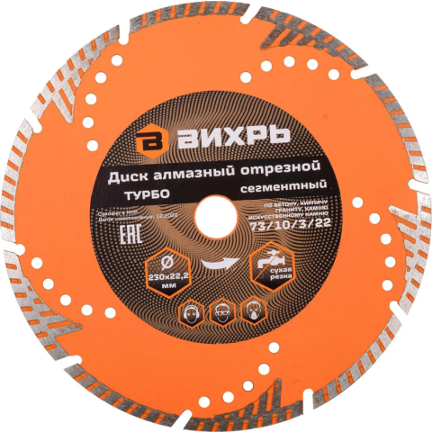алмазный диск, по бетону, по камню, по граниту, по кирпичу, диаметр 230 мм, посадочное отверстие 22.2 мм, 1 шт.