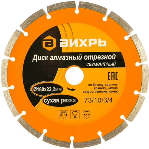 алмазный диск, по бетону, по камню, по граниту, диаметр 180 мм, посадочное отверстие 22.2 мм, 1 шт.