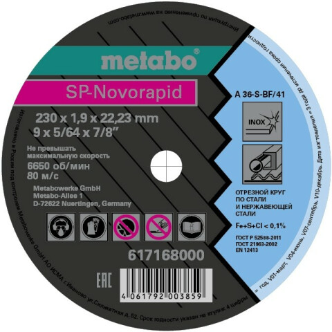 отрезной диск, по металлу, диаметр 230 мм, толщина 1.9 мм, посадочное отверстие 22.23 мм, 1 шт.