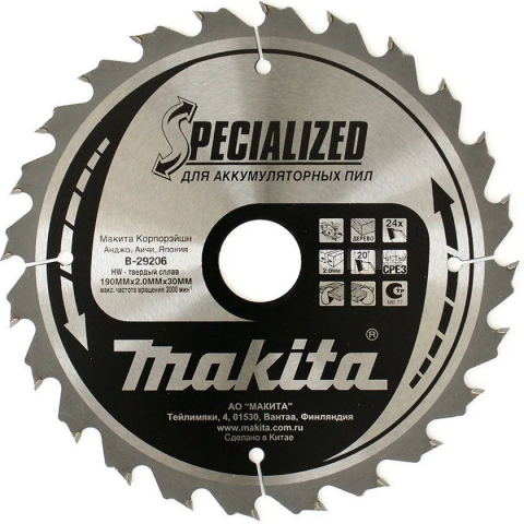 пильный диск, по дереву, диаметр 190 мм, толщина 1.4 мм, посадочное отверстие 30 мм, 1 шт.