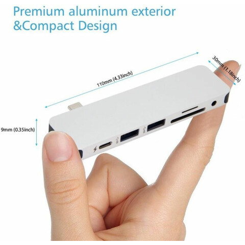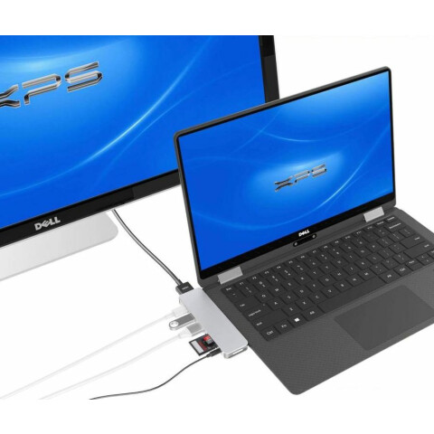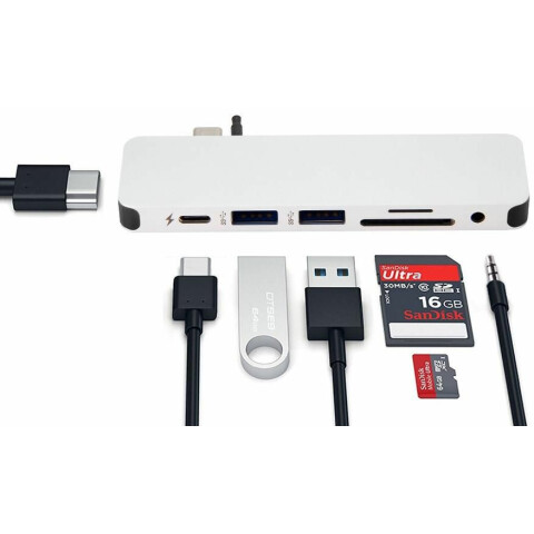док-станция USB-C для MacBook и устройств с USB-C, добавляет порты HDMI, Thunderbolt/USB-C, 2xUSB, также разъём 3.5мм minijack и слоты для карт памяти SD/microSD