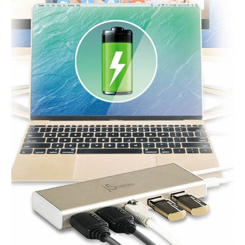 док-станция USB-C, сетевой порт RJ-45 1 Гбит/с, 2x HDMI, 2x USB 3.0, кабель 20см