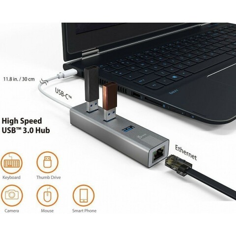 док-станция USB-C, добавляет порты: 3x USB 3.0, RJ-45 (Gigabit Ethernet)