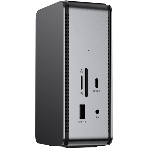 подключение USB Type-C, разъёмы: HDMI, 2xUSB 3.0, USB Type-C PD, 3.5 мм jack, сетевой интерфейс (RJ-45), питание от USB, кардридер: SD, microSD