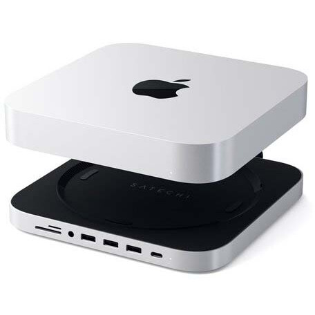 USB док станция с подставкой для Mac Mini, порты: 1x USB-C, 3 x USB, 3,5mm AUX, SD, microSD