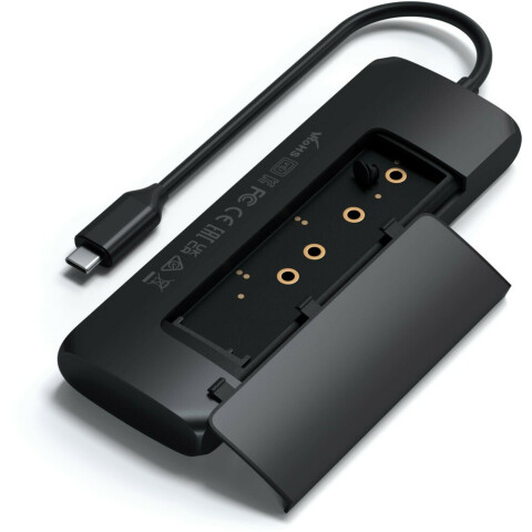 док-станция с интерфейсом USB-C, порты: HDMI, 3x USB 3.1, USB-C PD 100 Вт, встроенный отсек SSD (SATA M.2, поддерживает размеры 2230, 2242, 2260, 2280), не работает с Nvme, цвет: черный