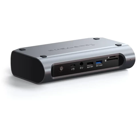 Бренд: Satechiподключение Thunderbolt 4/USB-C, разъёмы: 2xHDMI, 2xDisplayPort, USB 2.0, 2xUSB 3.2 Gen1, 3xUSB 3.2 Gen2, USB Type-C, Thunderbolt 4/USB-C, 3.5 мм jack, сетевой интерфейс (RJ-45), питание от сети, кардридер: SD, microSD
