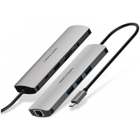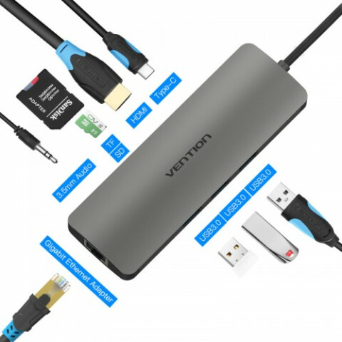 док-станция USB-C, добавляет порты HDMI, USB-C PD, 3xUSB-A 3.0, Gigabit Ethernet Port, mini jack 3.5 и слоты для карт памяти SD/microSD