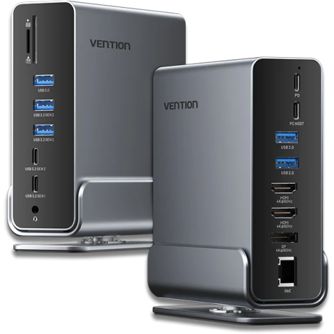 подключение USB Type-C, разъёмы: 2xHDMI, DisplayPort, 5xUSB 3.0, 2xUSB Type-C, USB Type-C PD, 3.5 мм jack, сетевой интерфейс (RJ-45), питание от USB, кардридер: SD, microSD