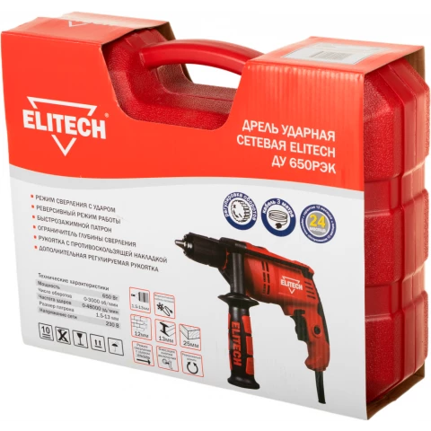 дрель, наличие удара, мощность 650 Вт, патрон: быстрозажимной, питание от сети, кейс