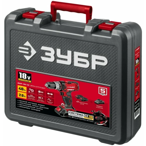 дрель-шуруповёрт, без удара, крутящий момент 40 Н·м, патрон: быстрозажимной, питание от аккумулятора, кейс