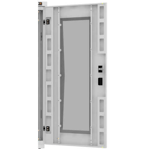 дверь одностворчатая цельнометаллическая на раме с замком и петлями для шкафа серии TFI 24U шириной 600мм, пара направляющих, серая RAL7035