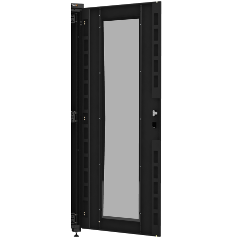 дверь одностворчатая перфорированная на раме с замком и петлями для шкафа серии TFI 42U шириной 800мм, черная, пара направляющих