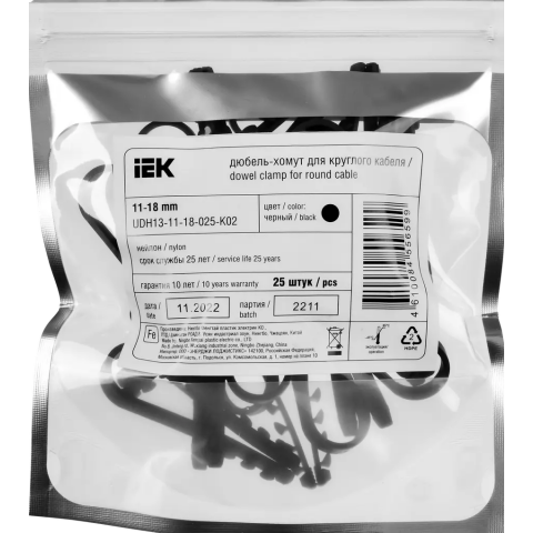 Бренд: IEKдюбель-хомут, диаметр охвата 18 мм, цвет: чёрный, 25 шт.